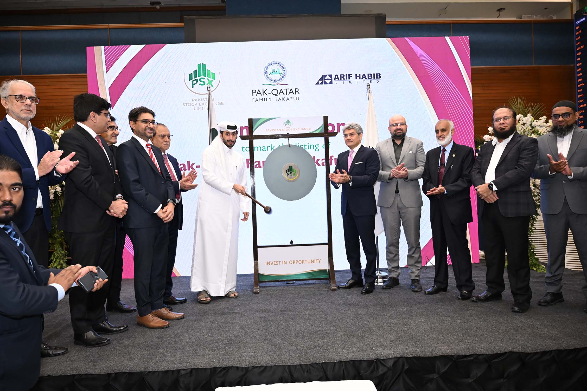 Pak-Qatar Family Takaful Limited (PQFTL) has become the first and only dedicated Family Takaful operator to list on the Pakistan Stock Exchange (PSX), following overwhelming investor demand in its IPO. The offering raised PKR 901 million at a 29% premium, with book building and public subscription oversubscribed 3.2x and 3.8x respectively, and participation from over 8,200 investors.