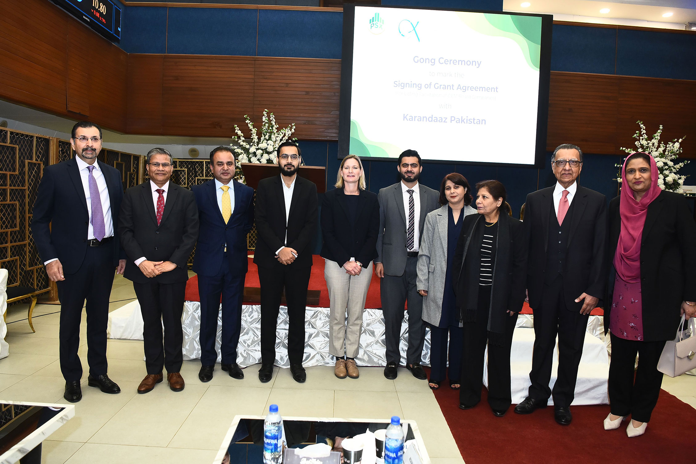 In a landmark development for the capital market, Pakistan Stock Exchange (PSX) signed an Agreement with Karandaaz whereby Technical Assistance (TA) grants would be given to prospective companies to be listed on the GEM Board. The Agreement was signed by Mr. Farrukh H Khan, MD & CEO PSX, and Mr. Waqas ul Hasan, CEO Karandaaz Pakistan (KRN), at a gong ceremony held at the Exchange.